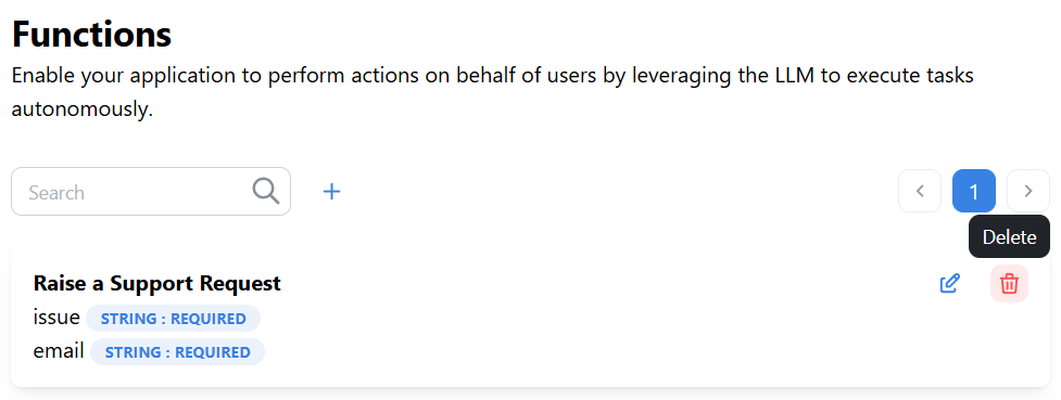 Automate actions for your users with functions. Convert your AI Assistant into an AI Agent that can perform tasks on behalf of your users.