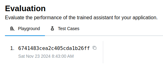 While the test case evaluation is in-progress, you can skip to the Playground section to see the assistant responses in action.