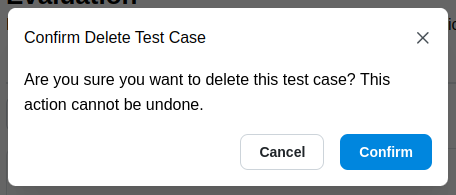 Confirm the deletion in the modal that appears. A success notification will confirm that the test case was deleted.